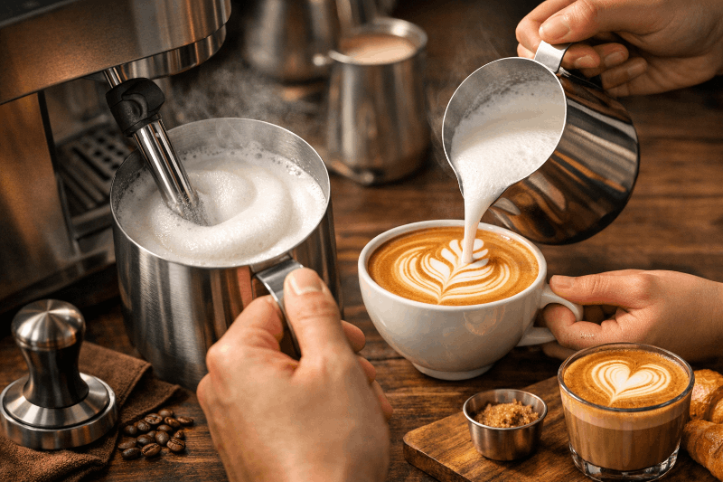 การวางมุมหัวตีและควบคุมอุณหภูมิอย่างถูกต้องจะเปลี่ยนนมธรรมดาให้กลายเป็นไมโครโฟมเนื้อเนียนละเอียด ซึ่งช่วยชูรสสัมผัสของกาแฟให้กลมกล่อมและสมดุลมากขึ้น