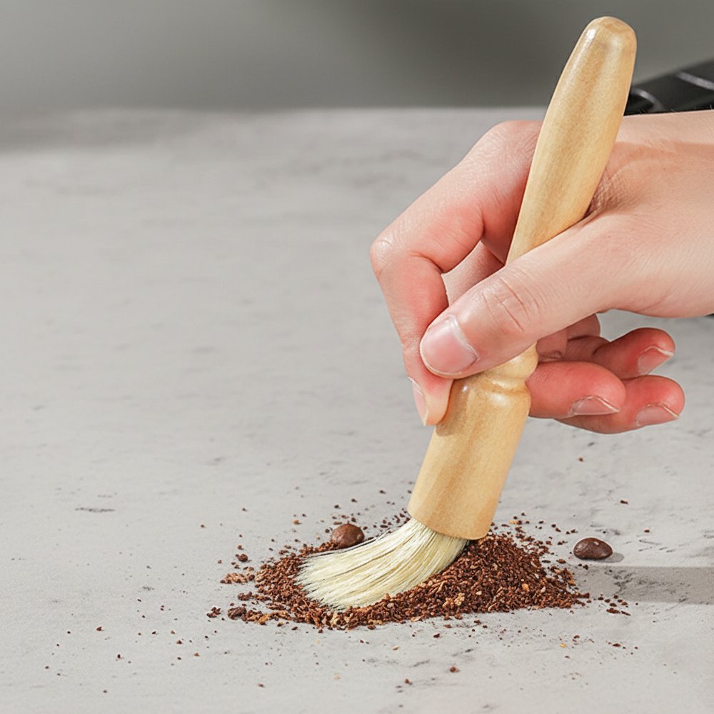 แปรงปัดผงกาแฟด้ามไม้ ทำความสะอาดเครื่องบดกาแฟ อุปกรณ์กาแฟ ด้ามจับไม้