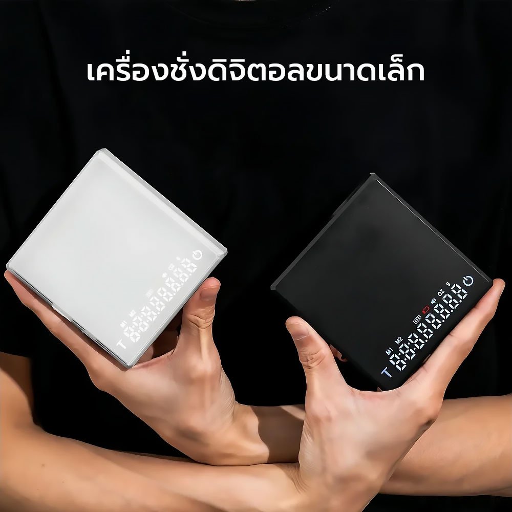 เครื่องชั่งกาแฟดิจิตอล สำหรับบาริสต้าและคนรักกาแฟ ตัวเครื่องมีความละเอียด 0.1 กรัม พร้อม Timer ในตัว ช่วยควบคุมน้ำหนักกาแฟ และเวลาการสกัดได้อย่างแม่นยำ